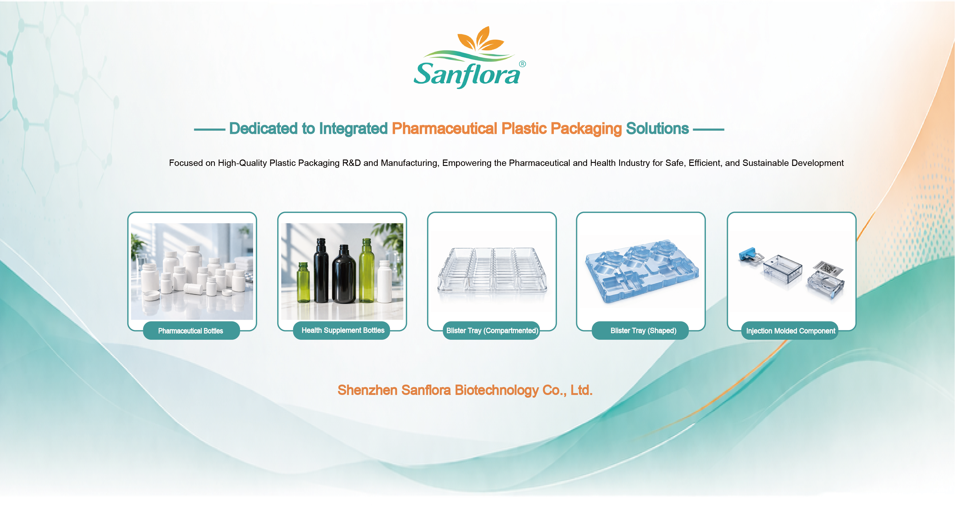 About SanfloraSanflora Focused on pharmaceutical plastic packaging solutions, we offer bottles, blister trays, and injection-molded components. With one-stop customization from design to mass production, our products serve pharmaceutical and healthcare industries worldwide.