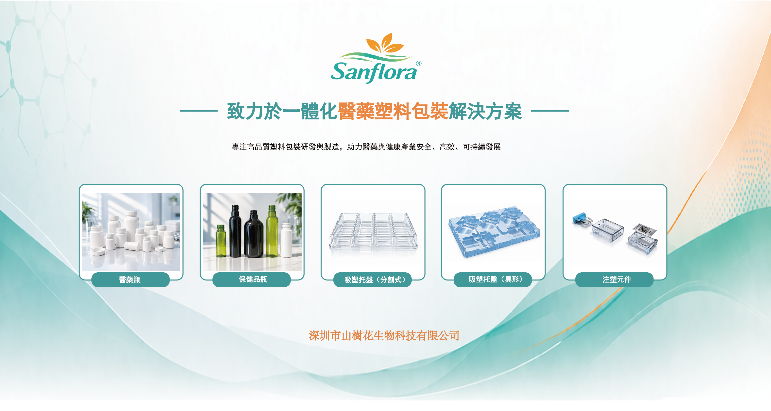 about us山樹花專注於醫藥塑膠包裝解決方案,提供醫藥瓶、保健品瓶、吸塑托盤及注塑元件等產品。支援從設計開發到量產的一站式客製化服務,廣泛應用於製藥與醫療領域,產品行銷全球。